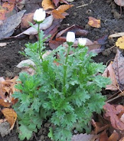 ・ノースポール: 園芸植物で、白い蕾(つぼみ)を付けて植えられていた(写真下)